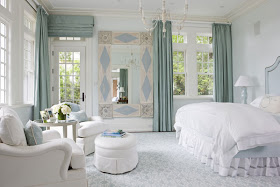 Here is a wonderful space. The architecture of this room is lovely. Notice how the built in art niches mimic the lines of the doors and the windows. I also like how the interior wall creates a room with in a room.