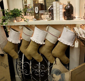 My other favorite items in Kym's Holiday Collection are her antique hessian and French jute stockings.