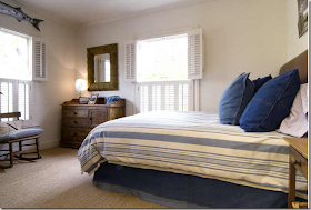 French ticking originated as a utilitarian fabric used to cover mattresses, pillows, and daybeds. An extremely durable fabric it was originally woven to withstand heavy use and had a traditional heavy weave and straight line pattern. According to Wendy, antique pieces can still be found as early as the 18th century. In this room above from Country Living we see the ticking on the pillows and on the box spring. I really like how this looks - subtle but a very nice touch.